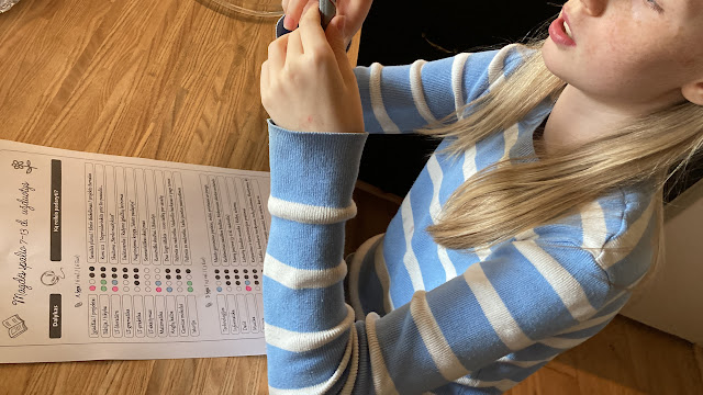 Magdė, prisiminusi pavasarinę patirtį su Wordwall platformos užduotimis, vis prašo, kad surasčiau jai ką nors iš ten. Deja, ne visada pavyksta ten rasti tinkamas temas. Tam kartui tik užduočių romėniškų skaičių užtvirtinimui radau, kai ką iš kalbos dalių, bet daugiau pasižaidimui nei rimtam mokymuisi.